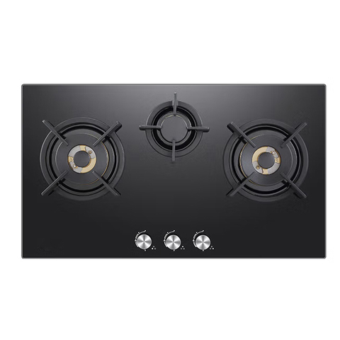 2024 नई डिजाइन फैक्टरी कीमत बिल्ट-इन तीन बर्नर टेम्पर्ड ग्लास टेबल टॉप गैस स्टोव